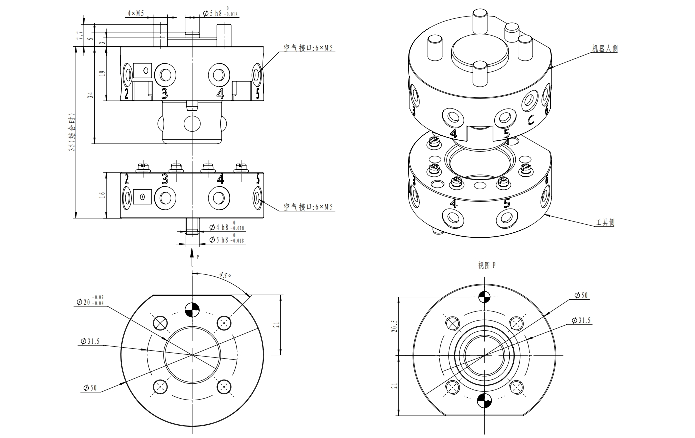 6路空氣通道,機器人側自密封,1個模塊安裝面